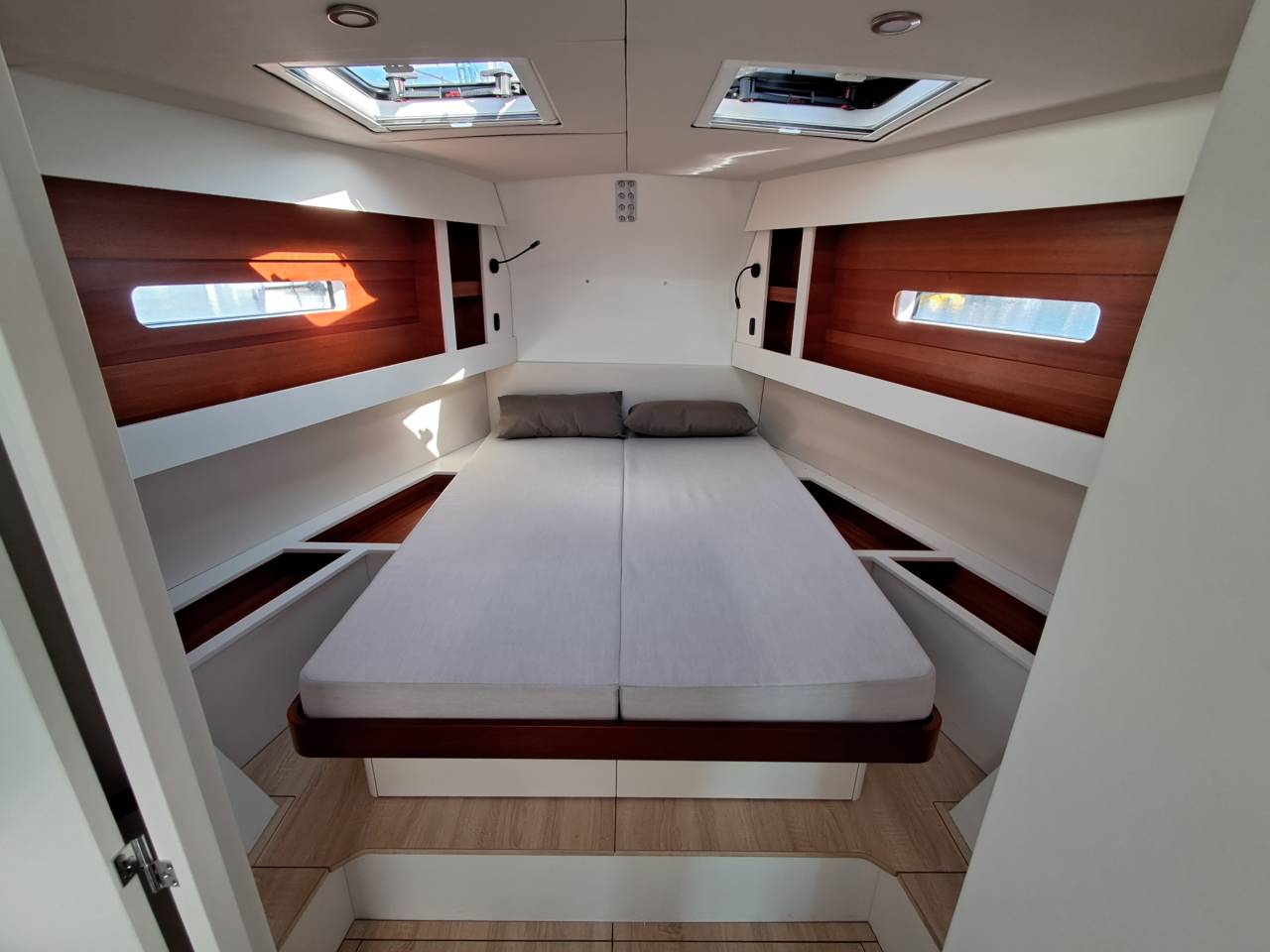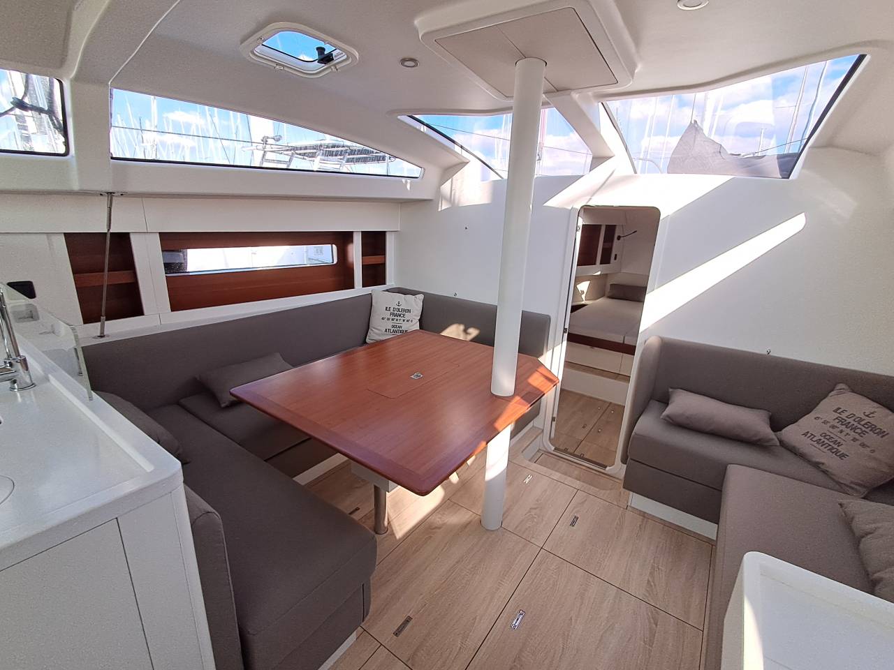 The RM 1380 combines comfort, elegance and functionality: this monohull has everything you need for your next cruise. Cosy sofa, rectangular mattresses, U-shaped galley. Every detail has been designed to make life on board comfortable.