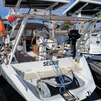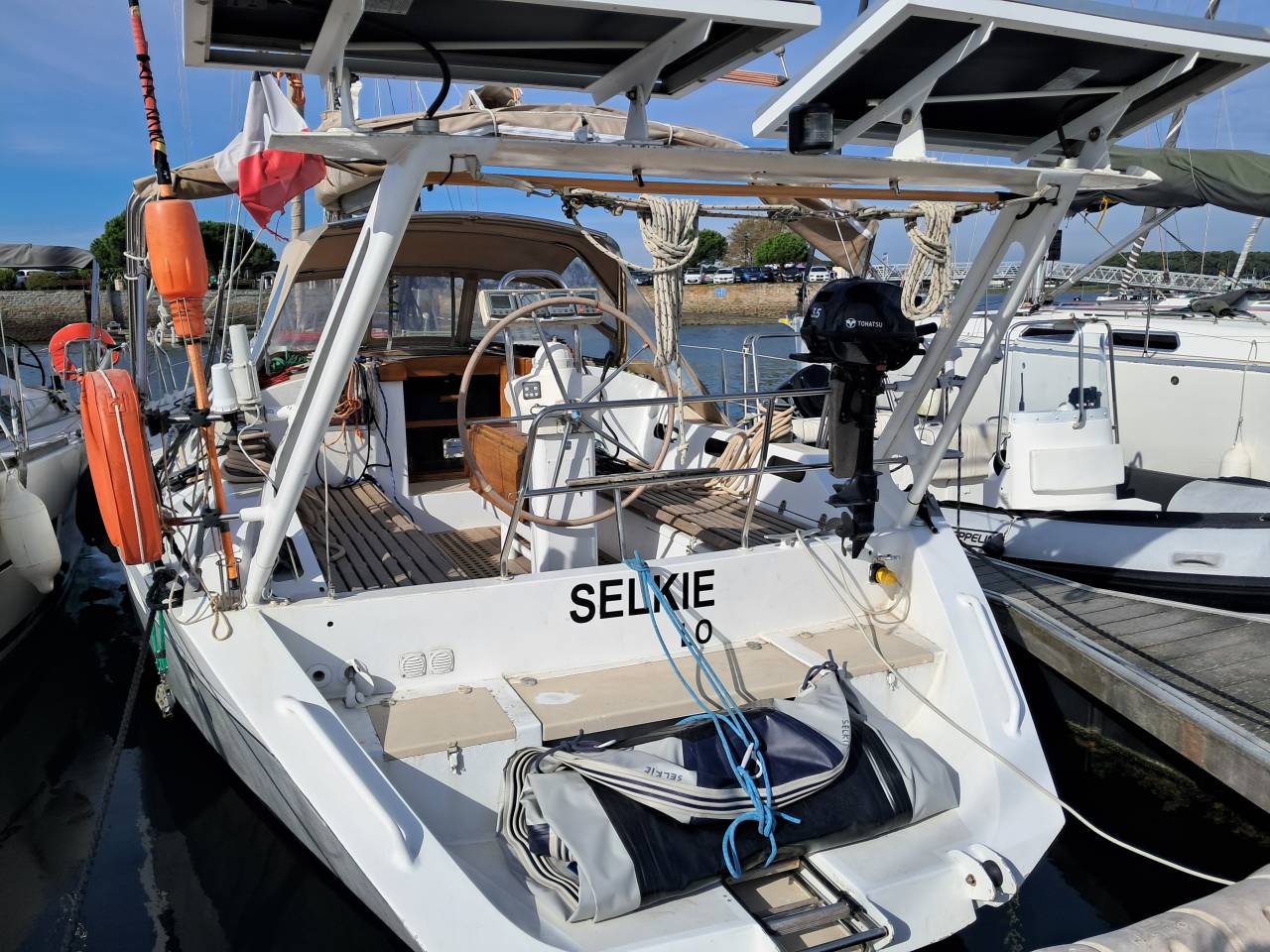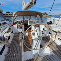 On deck, manoeuvring is easy and sailing pleasant. The sailboat controls are within easy reach from the cockipit : winches, halyard leads, aft skirt with bathing ladder, freshwater shower and rubber.