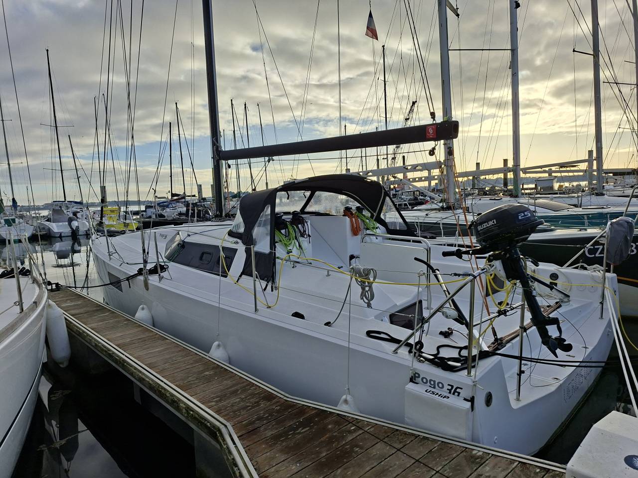 Le Pogo 36 est l'archétype du voilier de croisière moderne et a été élu voilier Européen de l'année 2017. Ses formes et sa construction en sandwich infusé sous vide sont issues directement de la gamme course au large du chantier Structure. Son aménagement est lumineux et fonctionnel et offre un beau confort de vie à bord ! Mais c'est surtout ses performances que l'on retiendra avec un bateau raide à la toile, plannant et bien accastillé.